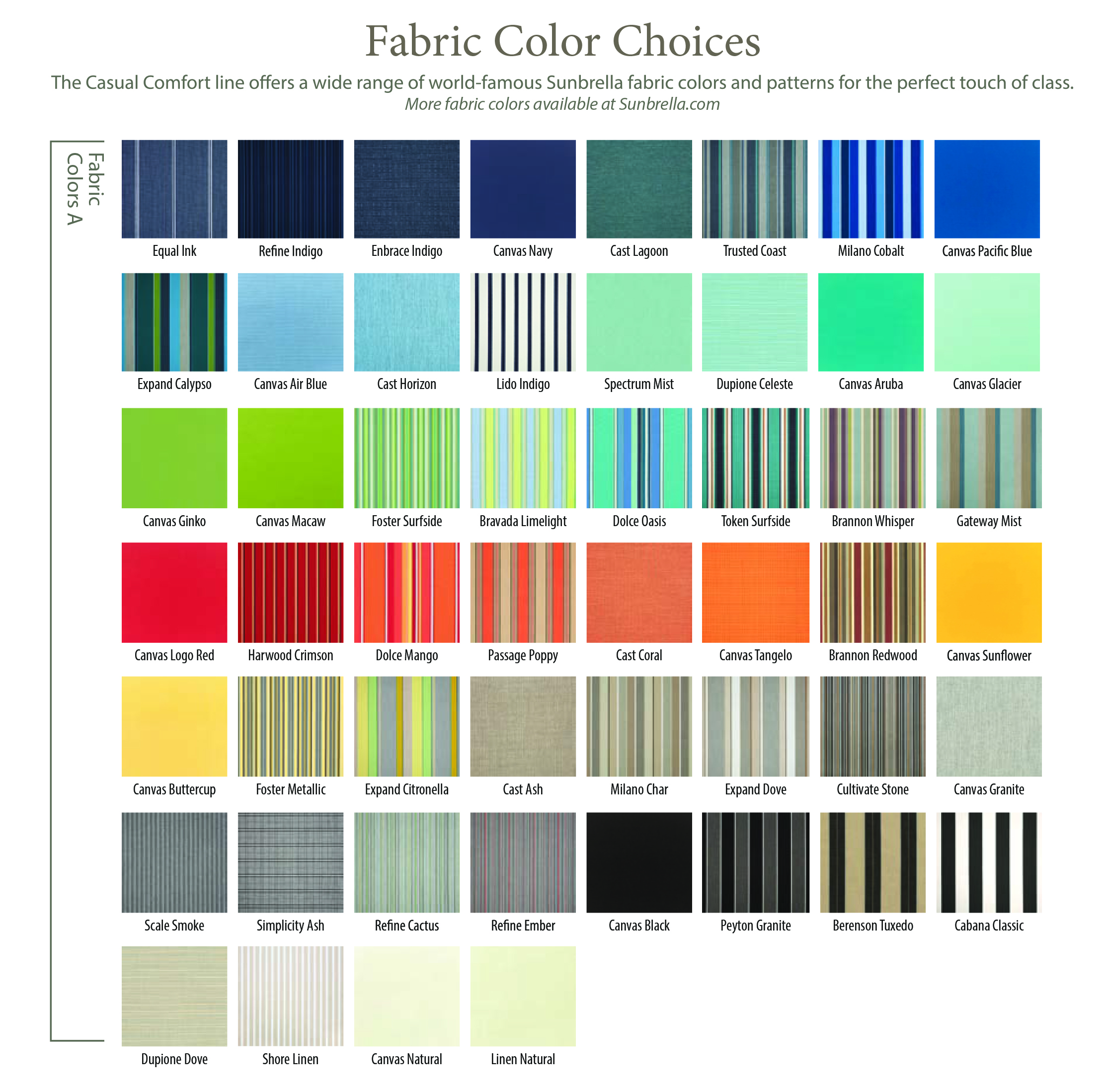 We offer a wide range of famous Sunbrella fabric colors and patterns for the perfect touch of class.